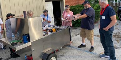 Free hot dogs at the Hot Dog cart in the parking lot on the second and fourth Saturdays of the month, weather permitting.